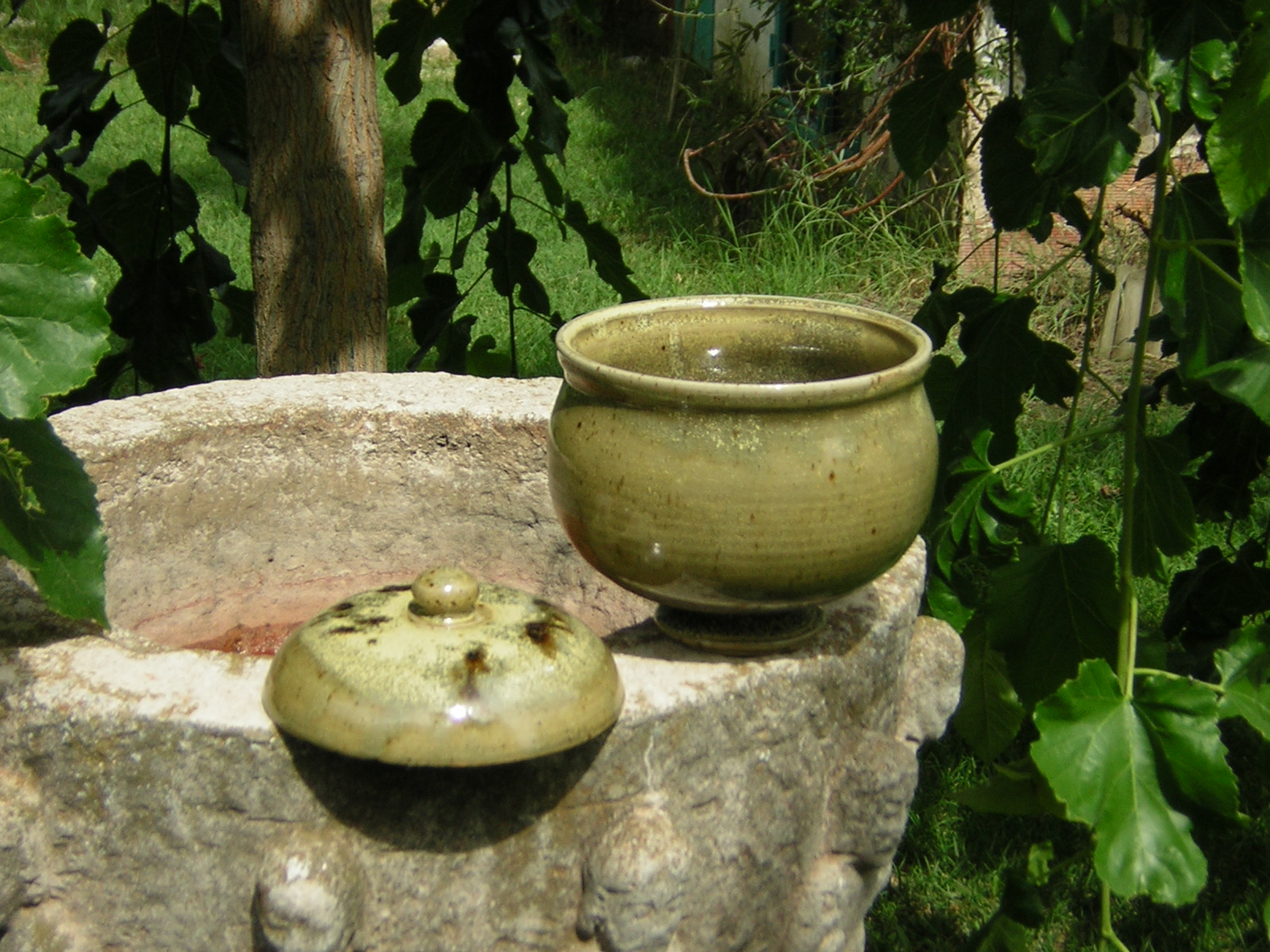 Almendra y uva sobre temmoku